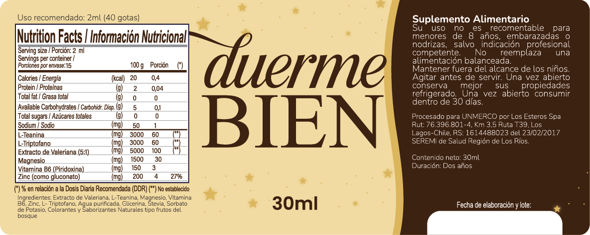 Gotas Duerme Bien 30ml – Extracto de Valeriana para un Sueño ProfundoDisponibilidad: 444 disponibles