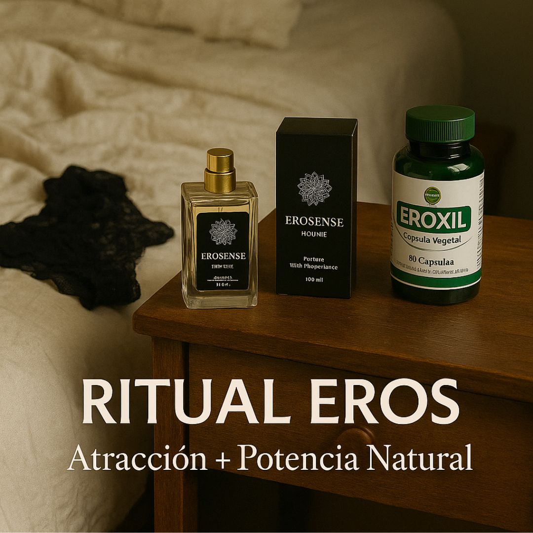 Pack Eros combina un perfume con feromonas para potenciar tu presencia masculina y un suplemento herbal chileno formulado para apoyar libido, energía y confianza. Ideal para hombres que quieren sentirse más seguros, atractivos y con una vitalidad que se nota al instante.