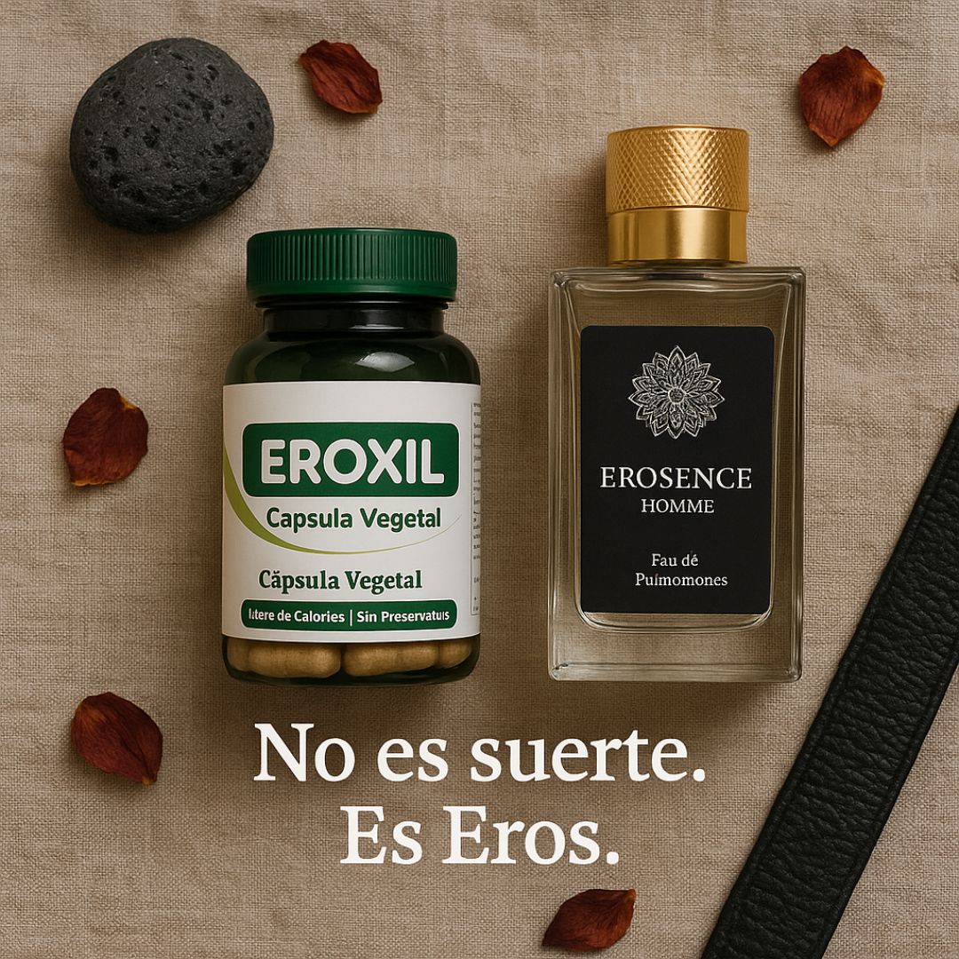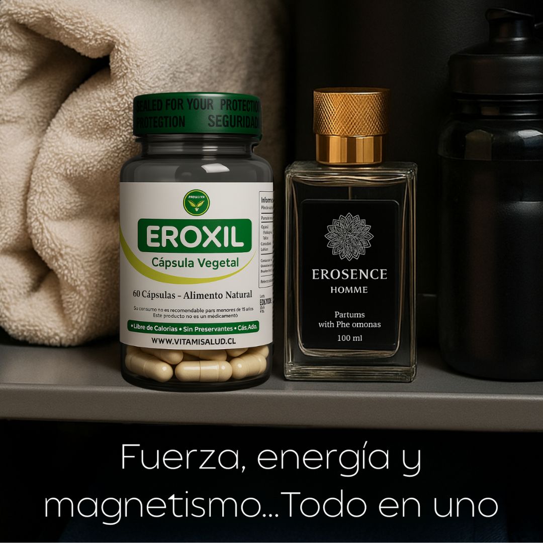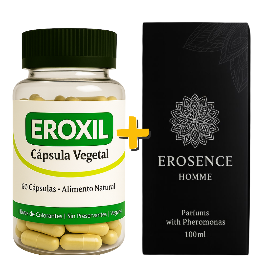 Pack Masculino: Perfume con Feromonas + Suplemento Eroxil para Libido, Deseo y EnergíaDisponibilidad: 144 disponibles